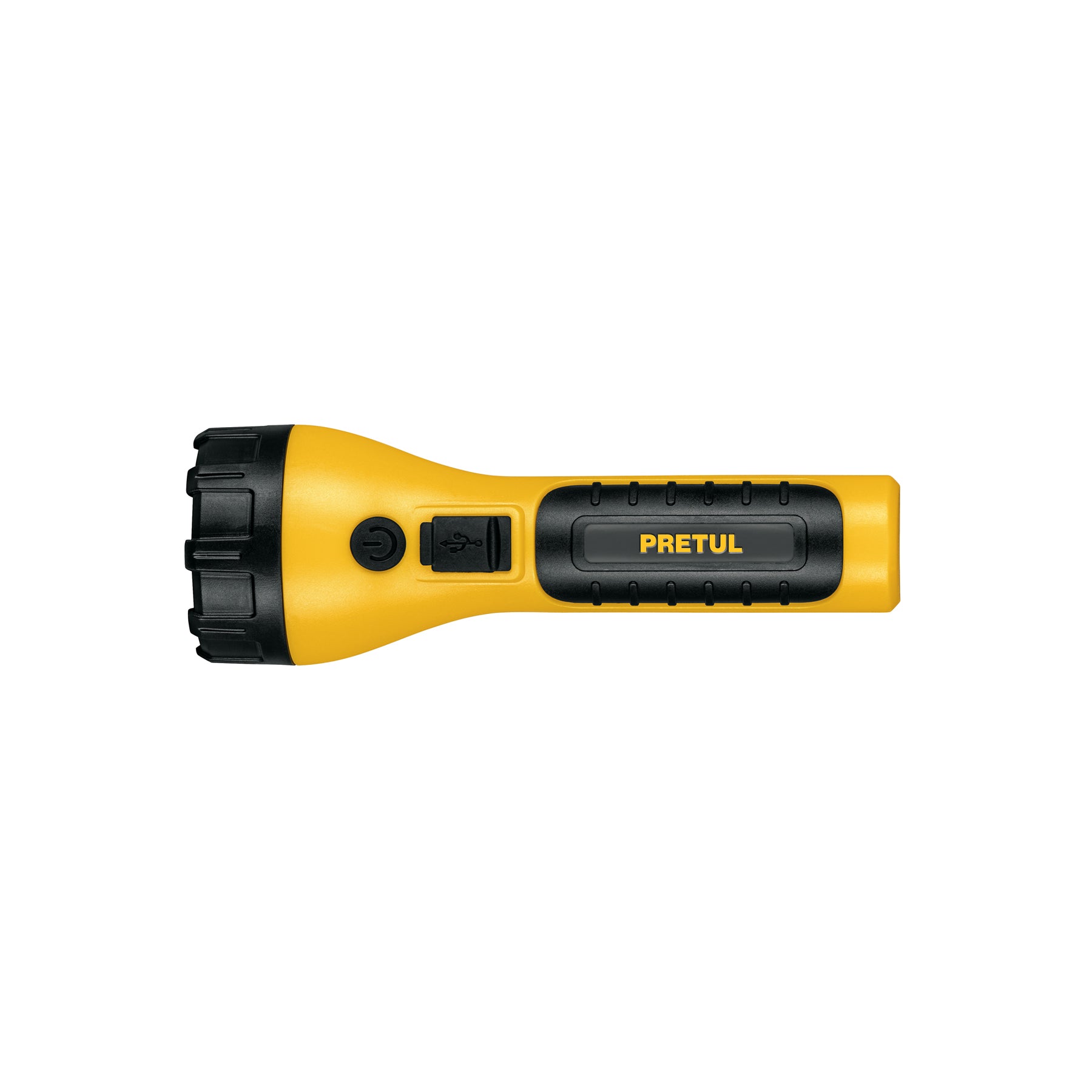 Linterna de plástico recargable con tecnología LED de alta intensidad. Ofrece un haz de luz cerrado de 10° con alcance de hasta 140 metros. Potencia de 180 lúmenes y autonomía de hasta 4 horas de uso continuo. Incluye 2 baterías de ion litio para mayor durabilidad y velocidad de carga, además de cable USB. Resistencia IPX3 contra polvo y salpicaduras de agua.