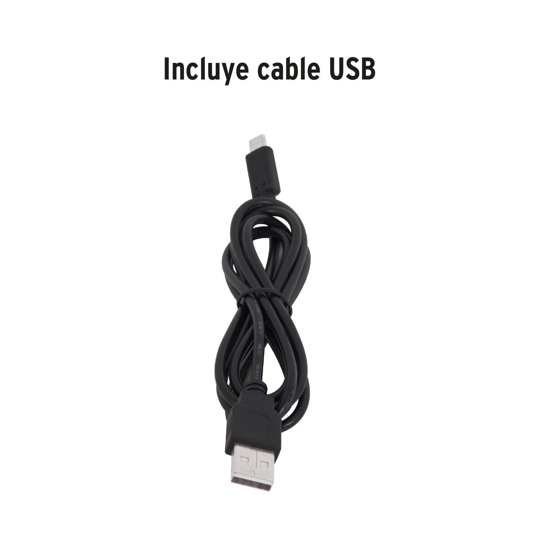 Reflector portátil recargable de alta intensidad con potencia de 145 lúmenes. Su diseño ligero y ergonómico facilita el transporte y manejo en cualquier situación. Proporciona iluminación eficiente para interiores, exteriores y emergencias. Incluye batería recargable con cargador integrado.